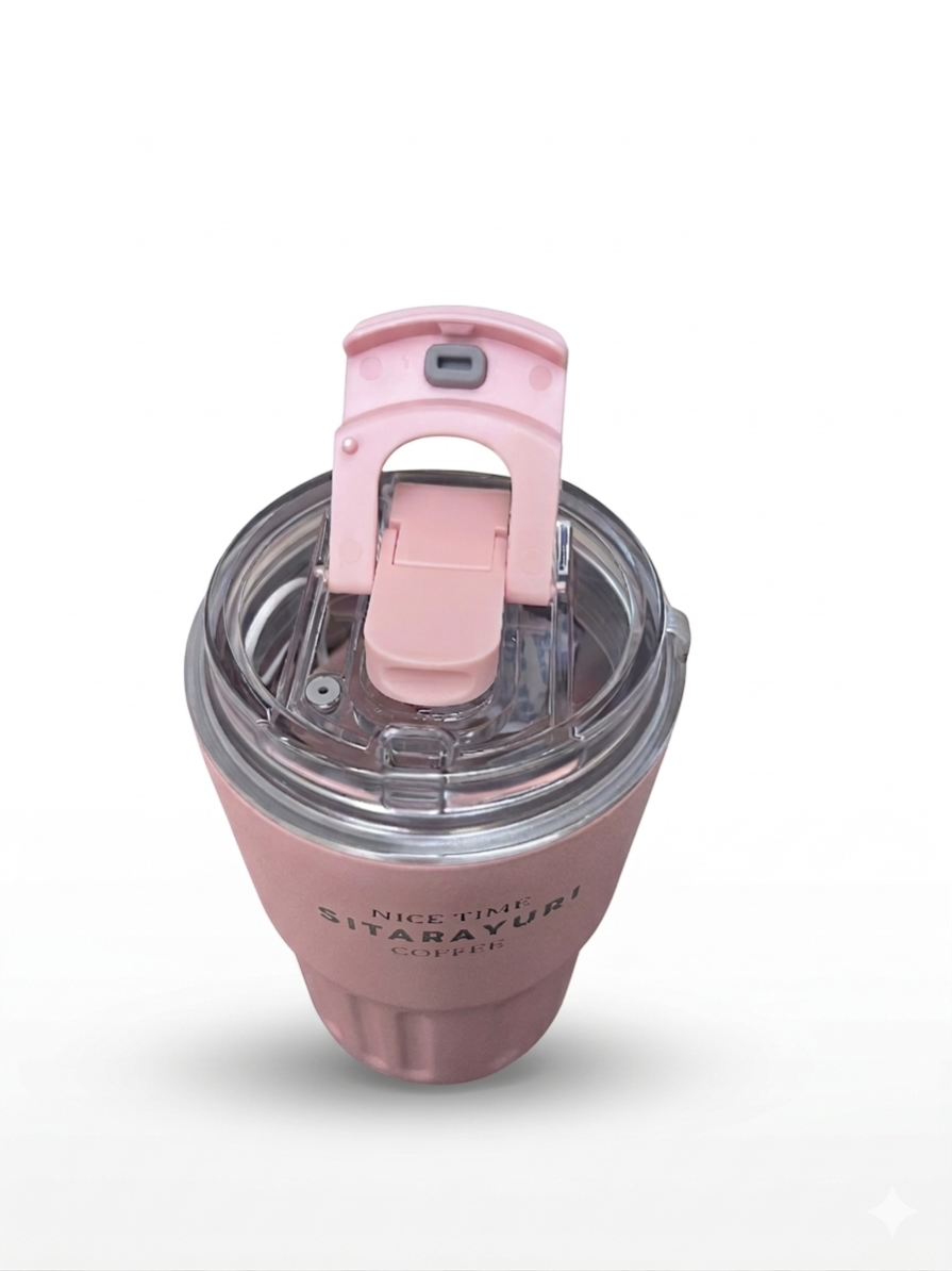 أكواب (Sitarayuri Coffee) كوب حراري (Thermal Tumbler) مصممة خصيصاً لحفظ درجة حرارة المشروبات لفترة طويلة، سواء ساخنة أو باردة. التفاصيل: • المادة: مصنوعة غالباً من ستانلس ستيل من الداخل (مقاوم للصدأ) مع طبقة خارجية مطفية تعطي شكل أنيق وما بتبين بصمات بسهولة. • العزل الحراري: فيها نظام عزل مزدوج (Double Wall Insulation)، يعني: • بتحافظ على السخونة لعدة ساعات (مثالية للقهوة والشاي) • وبتحافظ على البرودة كمان للمشروبات الباردة • الغطاء: غطاء بلاستيك شفاف محكم الإغلاق مع فتحتين شرب سهلة، وبهذا التصميم: • بيقلل من التسريب • مناسب للحركة (السيارة، الشغل، الجامعة) • التصميم: • الجزء السفلي فيه تعرجات (grip) عشان تمسكيه بسهولة • تصميم بسيط وعصري (Minimal) • الاستخدام: • قهوة يومية • شاي • آيس كوفي أو مشروبات باردة • مناسب للاستخدام خارج البيت • الميزة الأساسية: بيجمع بين الشكل الكيوت + العملية، يعني مش بس منظر، فعلاً مفيد بالحياة اليومية