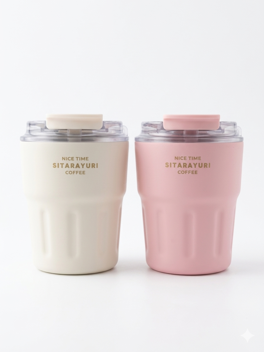 أكواب (Sitarayuri Coffee) كوب حراري (Thermal Tumbler) مصممة خصيصاً لحفظ درجة حرارة المشروبات لفترة طويلة، سواء ساخنة أو باردة. التفاصيل: • المادة: مصنوعة غالباً من ستانلس ستيل من الداخل (مقاوم للصدأ) مع طبقة خارجية مطفية تعطي شكل أنيق وما بتبين بصمات بسهولة. • العزل الحراري: فيها نظام عزل مزدوج (Double Wall Insulation)، يعني: • بتحافظ على السخونة لعدة ساعات (مثالية للقهوة والشاي) • وبتحافظ على البرودة كمان للمشروبات الباردة • الغطاء: غطاء بلاستيك شفاف محكم الإغلاق مع فتحتين شرب سهلة، وبهذا التصميم: • بيقلل من التسريب • مناسب للحركة (السيارة، الشغل، الجامعة) • التصميم: • الجزء السفلي فيه تعرجات (grip) عشان تمسكيه بسهولة • تصميم بسيط وعصري (Minimal) • الاستخدام: • قهوة يومية • شاي • آيس كوفي أو مشروبات باردة • مناسب للاستخدام خارج البيت • الميزة الأساسية: بيجمع بين الشكل الكيوت + العملية، يعني مش بس منظر، فعلاً مفيد بالحياة اليومية متوفر ب٣ الوان