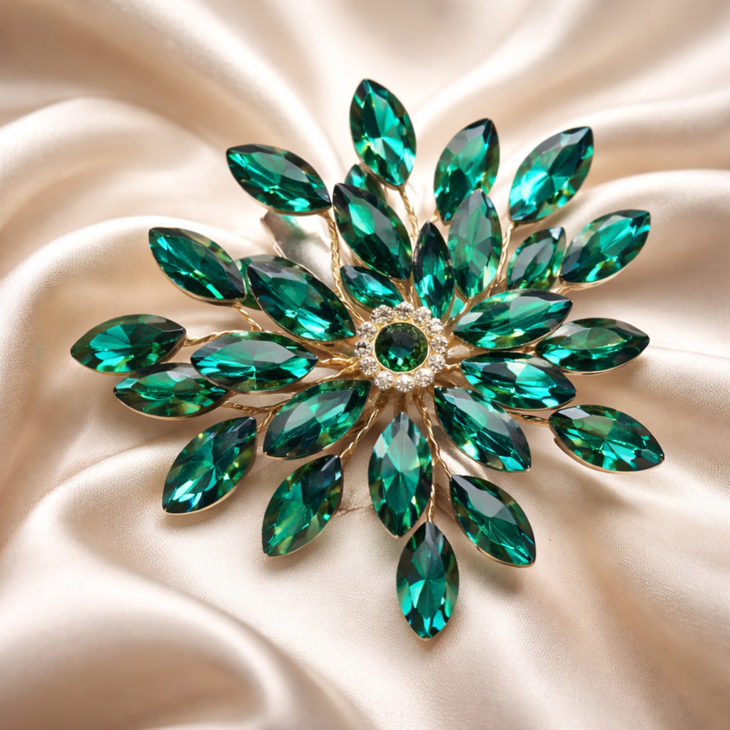دبوس شعر ببلورات خضراء ملكية، مستوحى من أوراق الشجر، ليعطي شعرك لمسة حيوية وفخامة استثنائية ملاحظة : القطعة الواحدة بـ 15₪ ، الثلث قطع بـ40₪