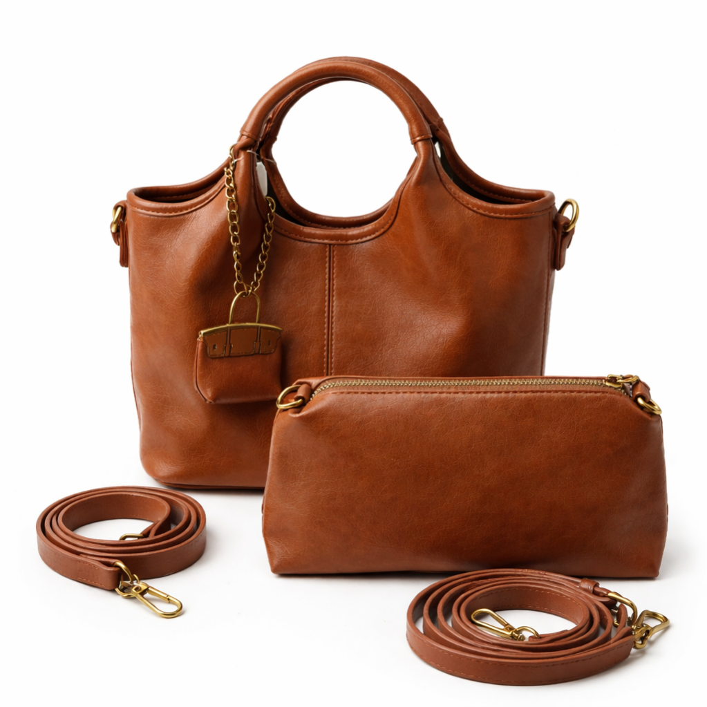 حقيبة جلد تحتوي على جزدان اضافي وحزامين وميدالية متوفرة ب لون واحد