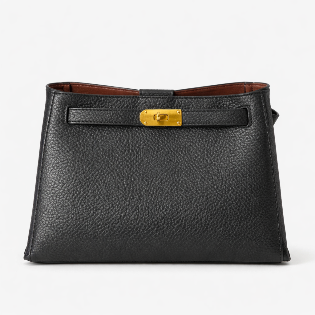 حقيبة جلد تحتوي على جزدان اضافي وحزام وميدالية متوفرة ب لون واحد