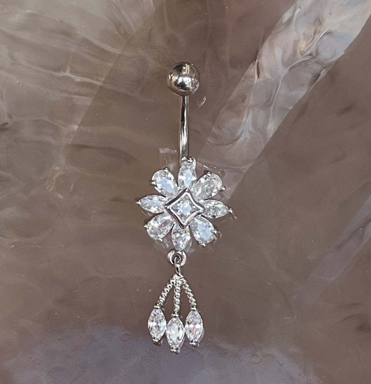 حلوق بيسرنج للسُرة فضي اللون مكفول ملاحظة: الاختيار عند اتصال الموظفة بك
