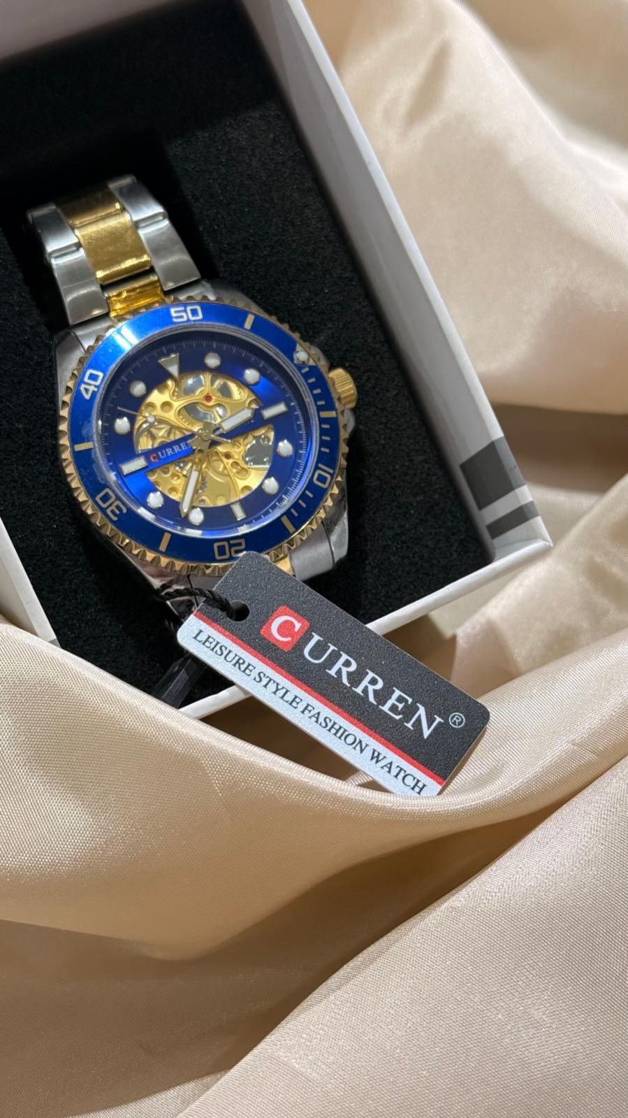 ساعة باللون الذهبي والفضي مكس الأرضية أزرق وذهبي اللون مكفول ملاحظة : تجنب ملامسته للعطور او الكريمات او مواد التنظيف