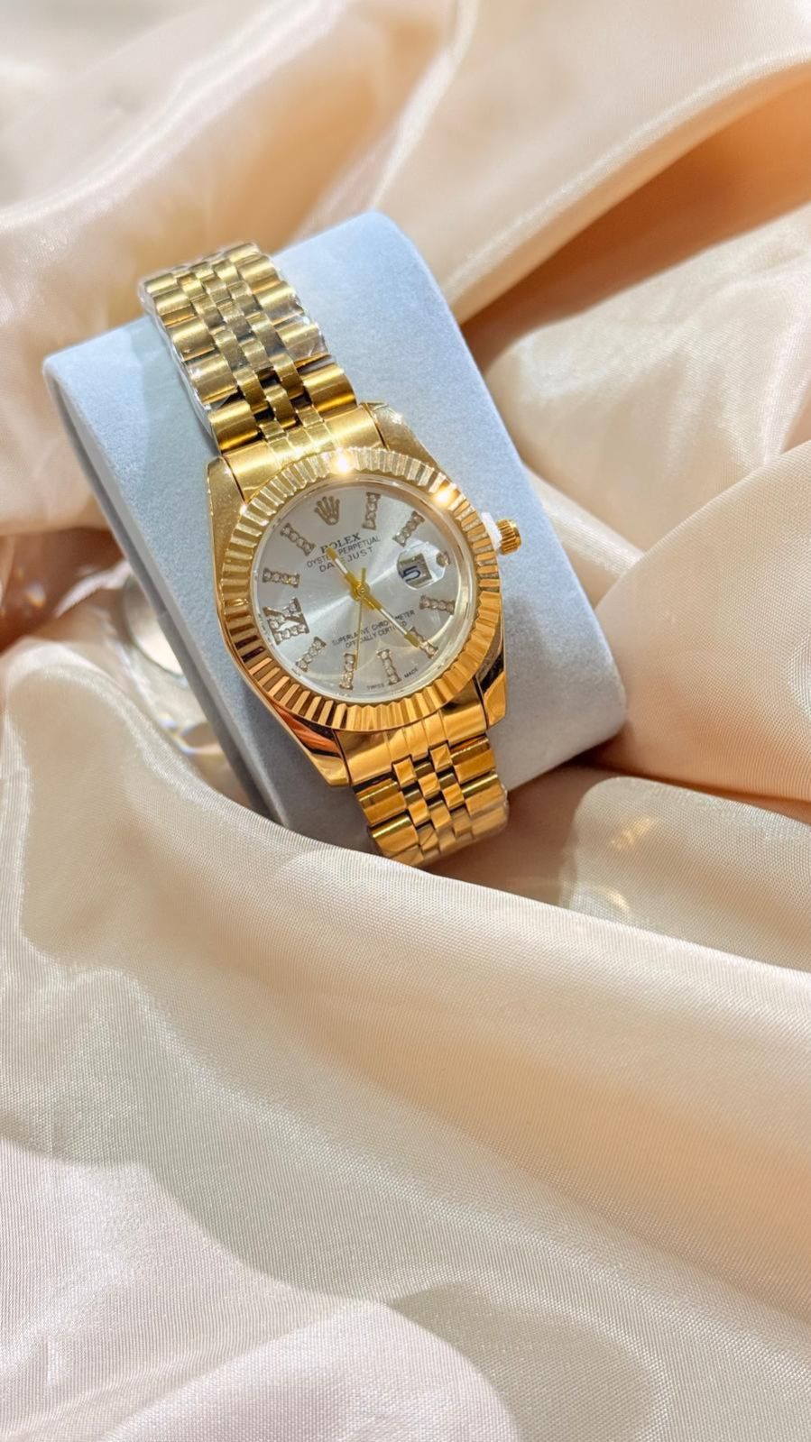 ساعة لون ذهبي اللون مكفول ملاحظة : تجنب ملامسته للعطور او الكريمات او مواد التنظيف