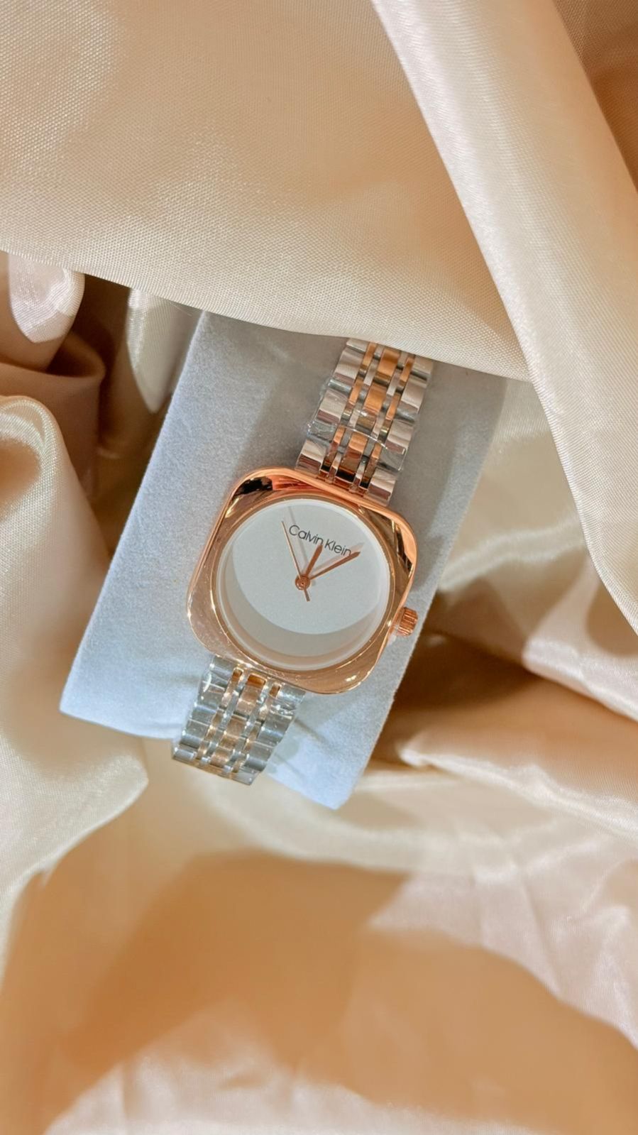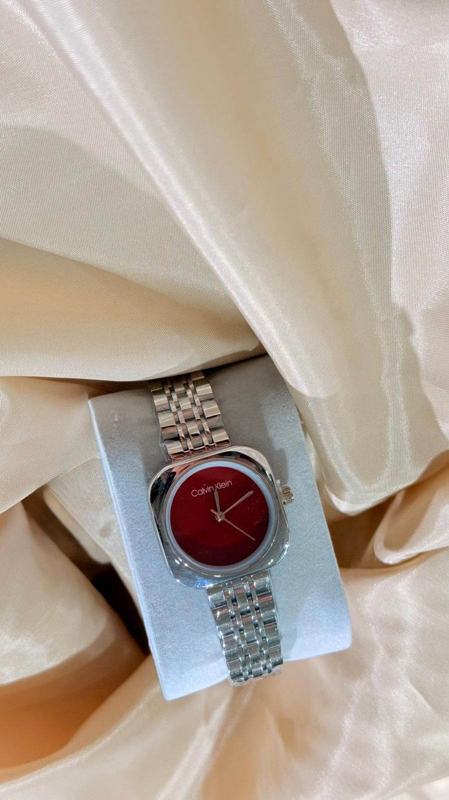 ساعة باللون الفضي والروز جولد مكس و الأرضية لون أبيض ومتوفر فضي والأرضية لون أحمر واللون الفضي والروز جولد مكس و الأرضية لون أسود اللون مكفول ملاحظة : تجنب ملامسته للعطور او الكريمات او مواد التنظيف