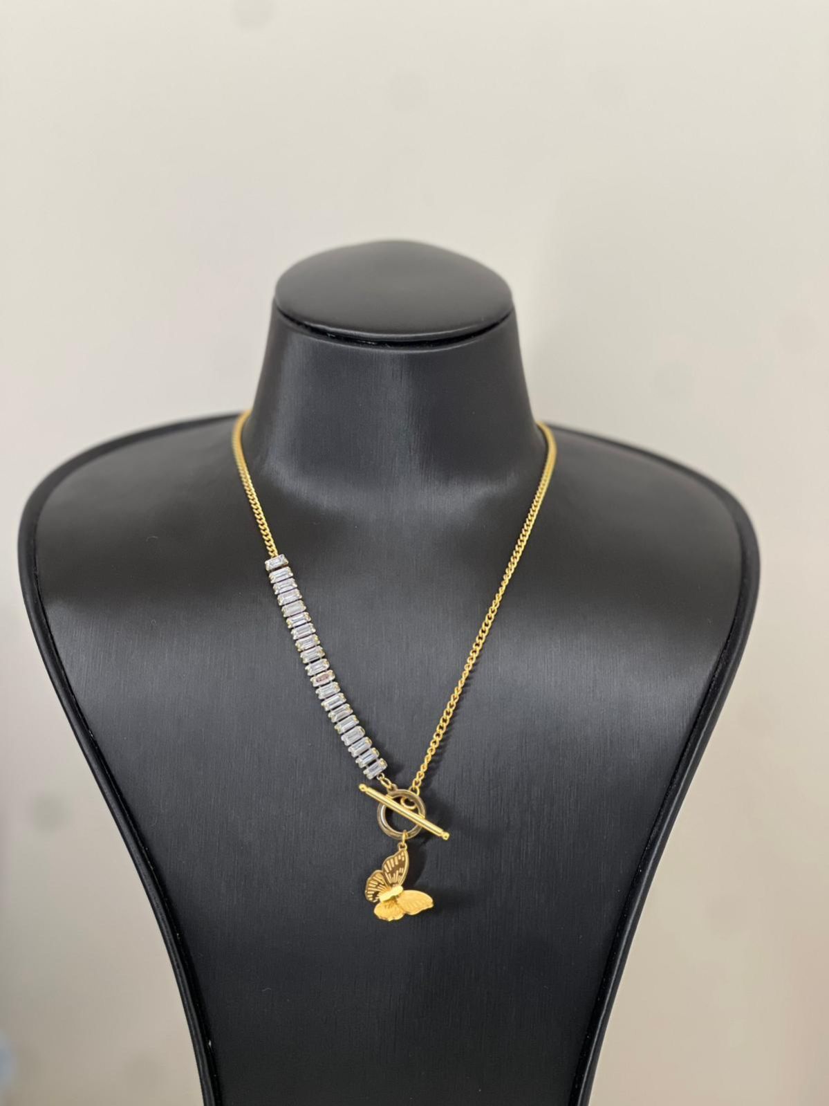 سنسال ذهبي مرصع بحجر الزركون مع شكل الفراشة اللون مكفول ملاحظة : تجنب ملامسته للعطور اوالكريمات او مواد التنظيف
