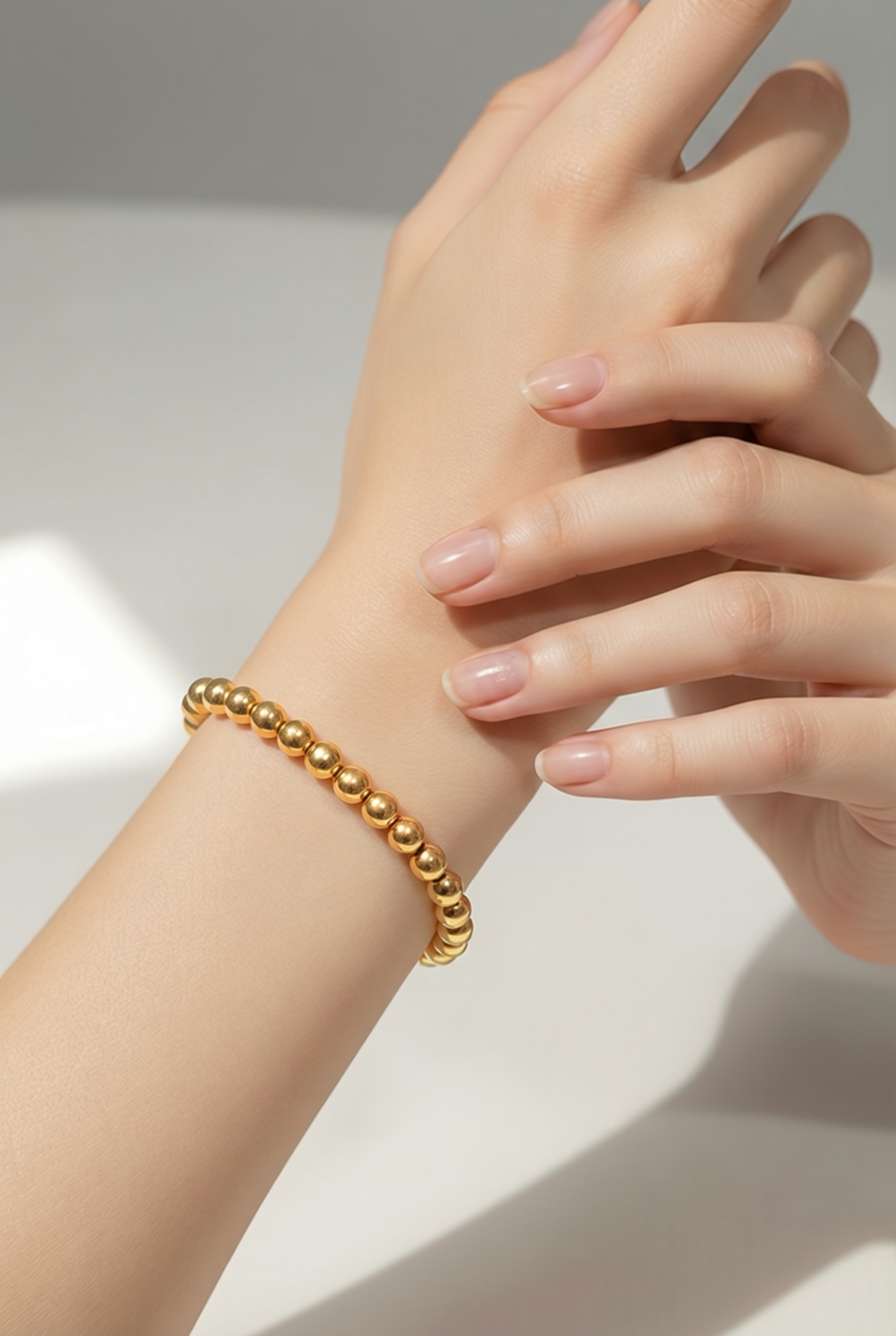 يتميز هذا السوار بتصميمه البسيط والأنيق المكون من كرات ذهبية مصقولة وناعمة. اللون مكفول