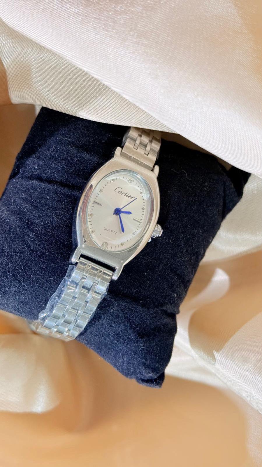 ساعة باللون الفضي اللون مكفول ملاحظة : تجنب ملامسته للعطور او الكريمات او مواد التنظيف