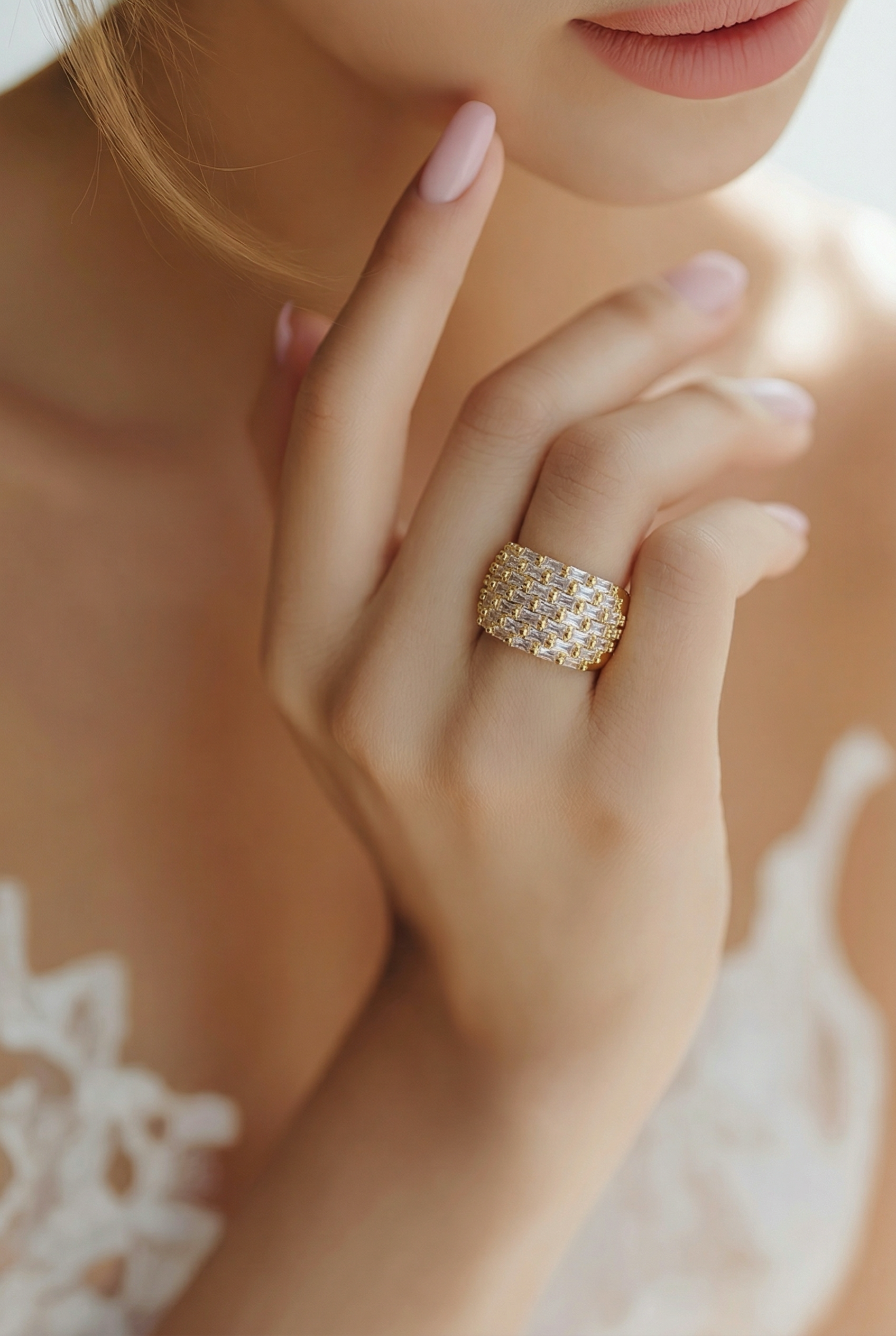 فخامة الذهب بلمسة هندسية عصرية. ملاحظة : تجنبي ملامسته للعطور أو الكريمات أو مواد التنظيف اللون مكفول