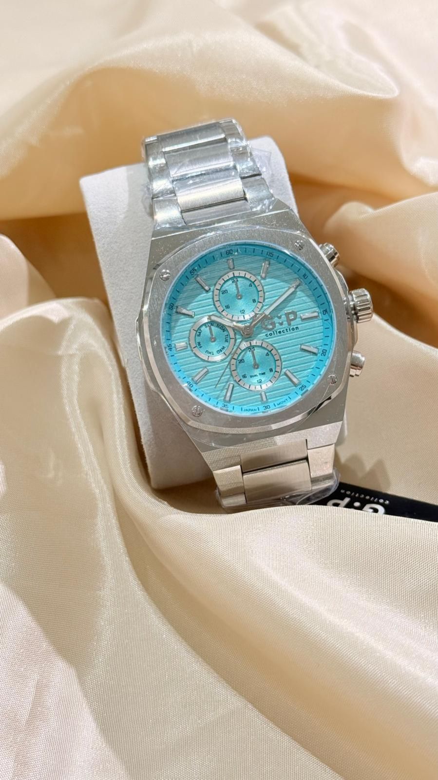 ساعة لون فضي الأرضية لون أزرق اللون مكفول ملاحظة : تجنب ملامسته للعطور او الكريمات او مواد التنظيف