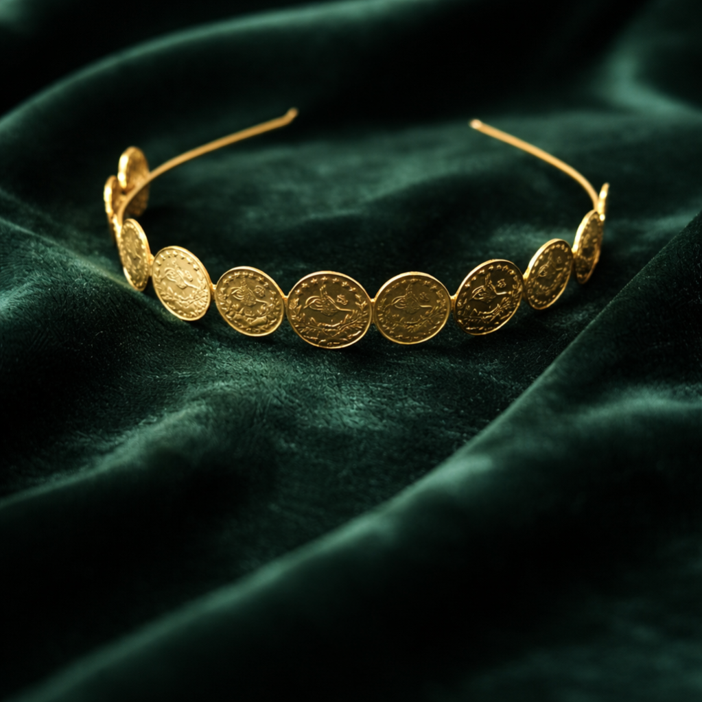 قطعة مميزة بتصميم مستوحى من الليرات الذهبية التراثية، بتفاصيل دقيقة ولمعة فخمة تعكس روح الأصالة والجمال. الطوق يعطي إطلالة ملكية ناعمة، تجمع بين التراث الفلسطيني والأسلوب العصري. مثالي لحفلات الحناء والمناسبات الخاصة، ليكون لمستك المختلفة ويبرز جمالك بطريقة راقية وملفتة