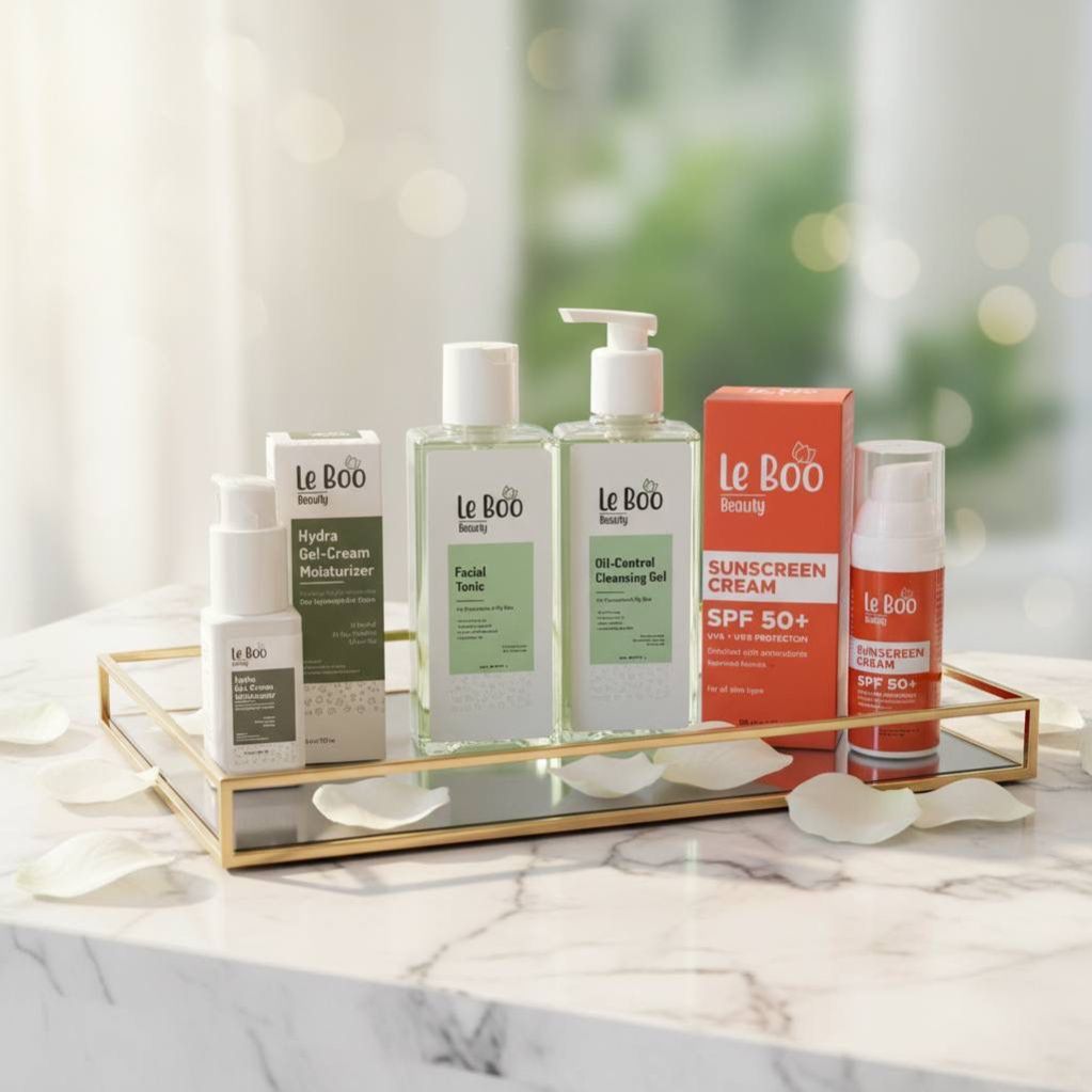 تتكون المجموعة من : غسول 200 مل تونر 200 مل مرطب 50 مل واقي شمس 50 مل
