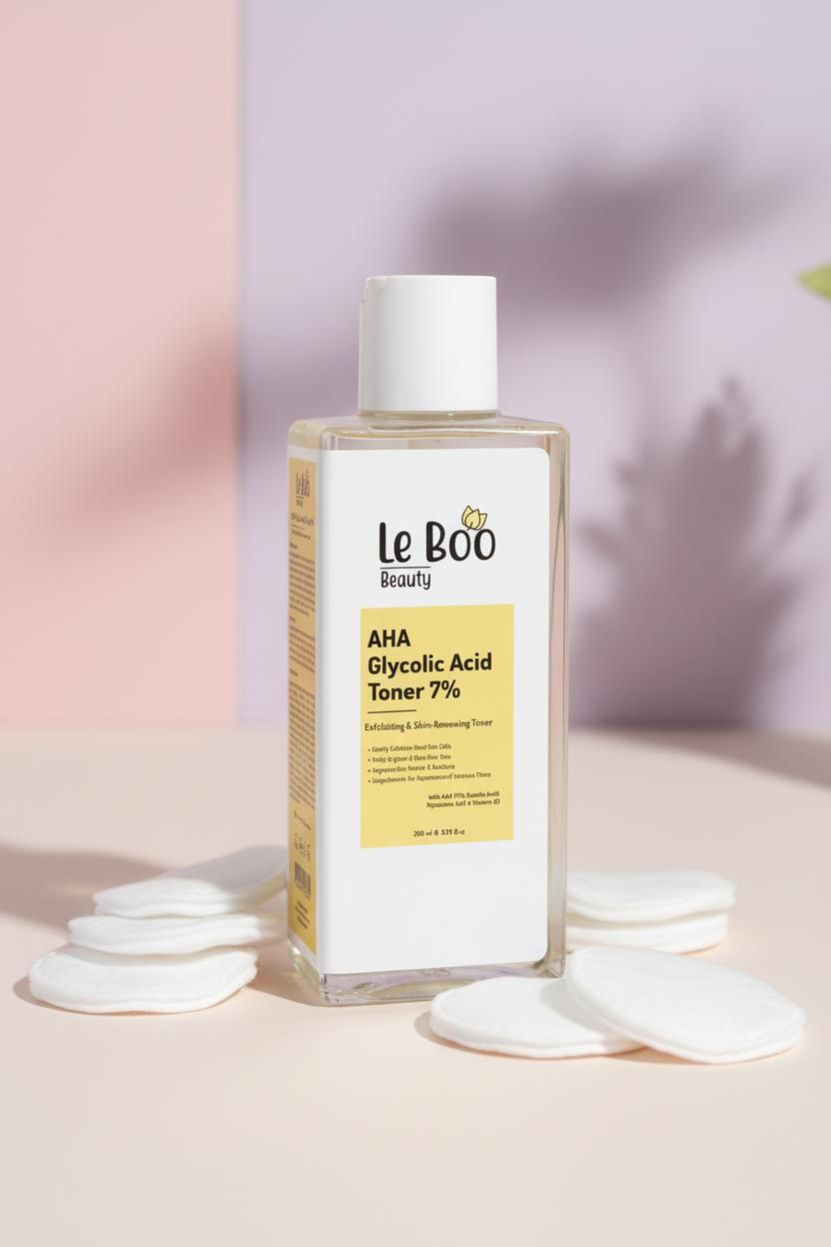 تونر حمض الجليكوليك (7%) لتجديد البشرة هذا التونر هو الحل المثالي لتجديد خلايا البشرة وتحسين ملمس الجسم، حيث يجمع بين قوة التقشير الكيميائي والترطيب العميق. فوائد المنتج وأهميته للبشرة والجسم: * تقشير لطيف وفعال: يعمل على إزالة خلايا الجلد الميتة بلطف لتجديد سطح البشرة. * تفتيح وتوحيد اللون: يساعد في تفتيح البشرة وجعل لونها أكثر تجانساً وإشراقاً. * تحسين الملمس: يعزز من نعومة البشرة وإشراقتها الطبيعية. * علاج جلد الإوزة (Keratosis Pilaris): يساعد بفعالية في تنعيم مظهر الحبيبات والنتوءات الناتجة عن تقرن الجريبات الشعرية في الجسم. أبرز المكونات وفعالية كل منها: * حمض الجليكوليك بنسبة 7% (Glycolic Acid): أقوى أحماض الفواكه (AHA) التي تتغلغل في البشرة لتقشيرها، تحفيز الكولاجين، وعلاج التصبغات والخشونة. * حمض الهيالورونيك (Hyaluronic Acid): يضمن ترطيب البشرة أثناء التقشير لمنع الجفاف ويمنحها مظراً ممتلئاً. * فيتامين B5 (Panthenol): يعمل كمادة مهدئة ومرممة للجلد لتقليل التحسس الناتج عن التقشير. نوع البشرة المناسب: * مناسب لجميع أنواع البشرة التي تعاني من البهتان، الخشونة، أو آثار الحبوب (يُفضل عمل اختبار رقعة قبل الاستخدام). طريقة وأوقات الاستخدام: * للوجه: يوضع بلطف على بشرة نظيفة وجافة باستخدام قطعة قطن أو أطراف الأصابع (مع تجنب منطقة العين) مرة واحدة يومياً في المساء فقط. * للجسم (المناطق الخشنة أو جلد الدجاجة): يوضع على المنطقة المرادة ويُترك دون شطف. * التدرج في الاستخدام: ابدئي باستخدامه من مرة إلى مرتين أسبوعياً، ثم زيدي التكرار تدريجياً حسب تحمل بشرتك. * ملاحظة هامة: يجب دائماً استخدام واقي شمس خلال النهار أثناء فترة استخدام هذا المنتج لأن الأحماض تزيد من حساسية البشرة للشمس. تحذيرات: * للاستخدام الخارجي فقط، وتجنبي استخدامه على بشرة متهيجة أو مجروحة. * قد تشعرين بوخز خفيف عند الاستخدام وهذا أمر طبيعي.