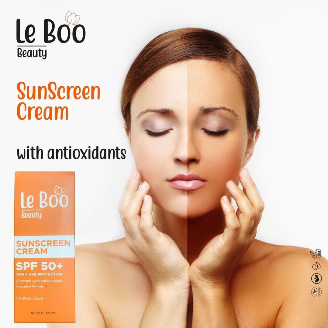 Le Boo sunscreen cream SPF 50+ للحفاظ على بشرتك من أشعةالشمس بحماية 50spf+ ليشكل حاجزاً أمام أشعة الشمس☀حيث يحتوي على حماية UAV+UVB الفرق بين UVB وUVA يوجد نوعان من الأشعة فوق البنفسجية UVA ، UVB والتي تسبب تلف الجلد وظهور علامات تقدم السن مبكراً و تزيد من احتمال حدوث سرطان الجلد. والأشعة فوق البنفسجية من نوع B هي السبب الرئيسي وراء حدوث حروق الشمس، أما النوع A فيخترق الجلد بدرجة أعمق ويسبب التجاعيد و علامات تقدم السن، يتم هو مقياس لقدرة واقي الشمس على الحماية من أشعة الشمس فوق البنفسجية UVB، حيث أن معظم أنواع واقي الشمس التي عامل الحماية بها 15 فأكثر تقوم بحماية الجلد بشكل ممتاز من UVB. حيث أن الحماية من UVA مهمة جداً حيث أن هذا النوع من الأشعة يخترق الجلد بعمق ويسبب حدوث التجاعيد،بالإضافة إلى أن كلاً من النوعين يزيد من احتمال الإصابة بسرطان الجلد. بالاضافة الى أنه يعمل على الحد من البقع الداكنة